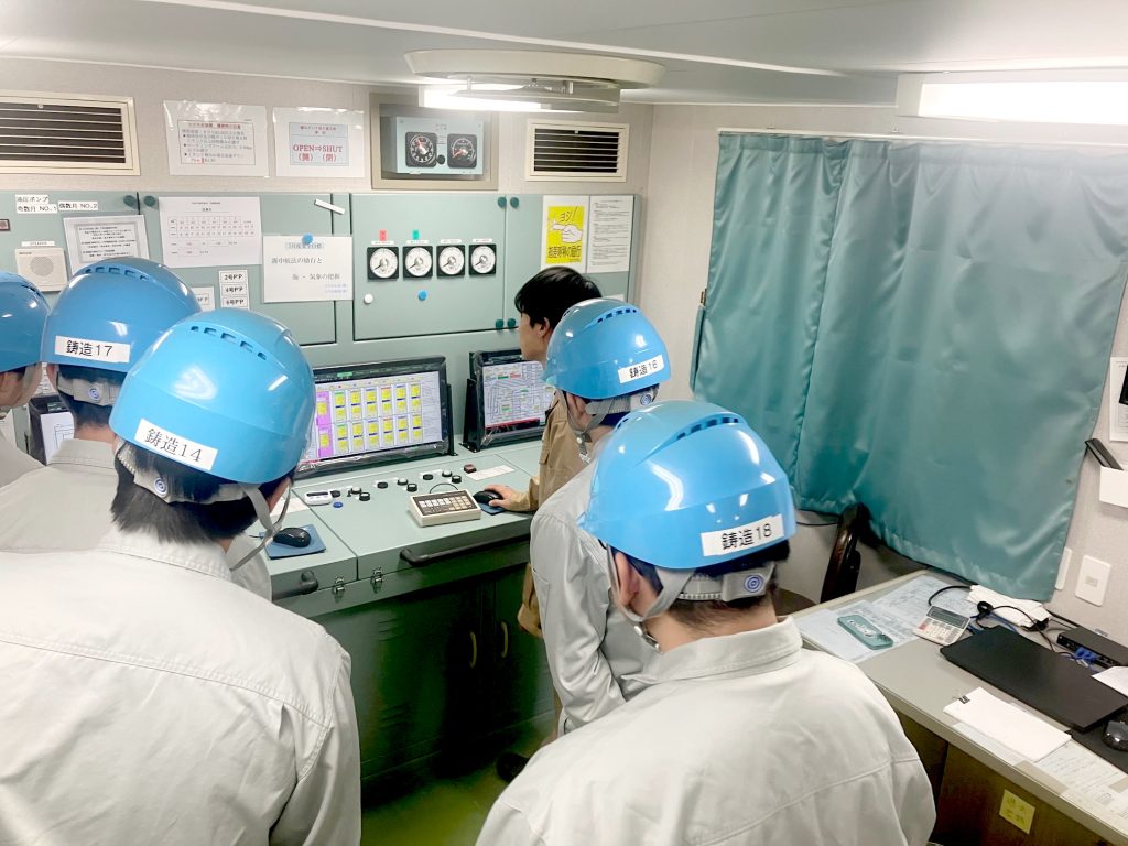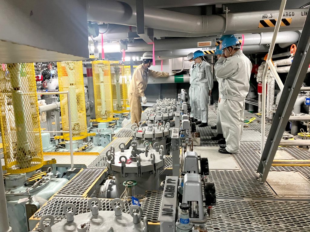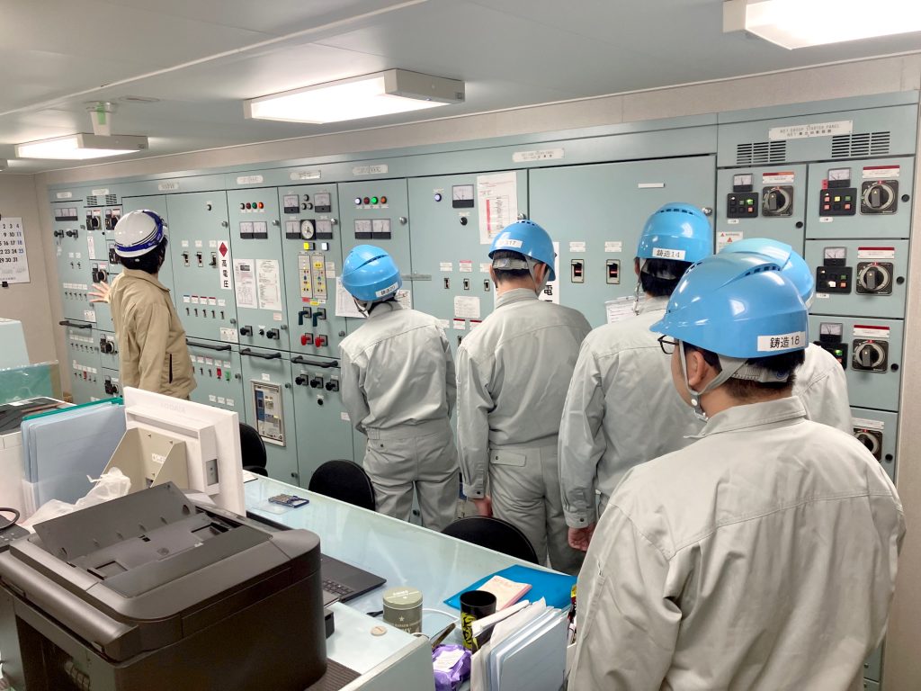 天候に恵まれる中、進路指導の先生および専攻科2年生の学生5名が見学会に参加してくださいました。本見学会は大型タンカー船の職場環境を実際にご覧いただき、当社の業務に対する理解を深めていただくことを目的とし開催いたしました。